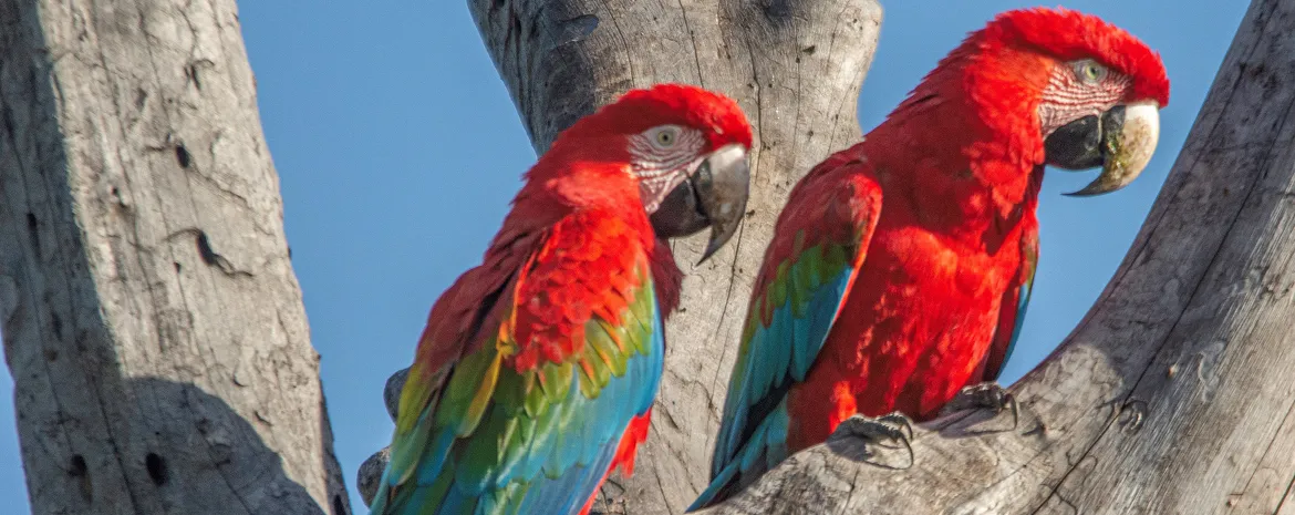 A Arara Vermelha é uma das maiores e mais exuberantes aves do Brasil, com suas penas em tons vibrantes de vermelho, azul e verde. Encontrada principalmente em regiões de mata densa e florestas tropicais, essa espécie é símbolo da biodiversidade brasileira.