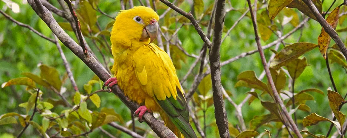 A Araranjuba, também conhecida como Guaruba, é uma das aves mais emblemáticas da região amazônica. Sua plumagem em tons vibrantes de amarelo com detalhes verdes e seu comportamento social a tornam inconfundível. Por sua beleza, é altamente visada pelo comércio ilegal, o que coloca essa espécie em situação vulnerável.