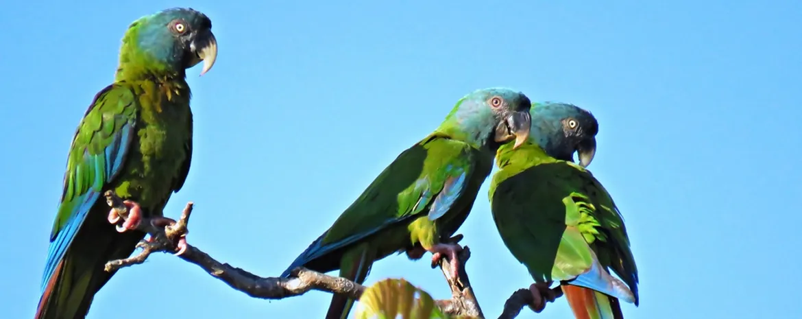 A Maracanã de Cabeça Azul é uma ave nativa da região amazônica ocidental, reconhecida por sua plumagem verde com cabeça azul intensa e cauda alongada. Apesar de menos conhecida que outras espécies de araras, está entre as mais ameaçadas devido à perda de habitat e ao tráfico ilegal de aves silvestres.