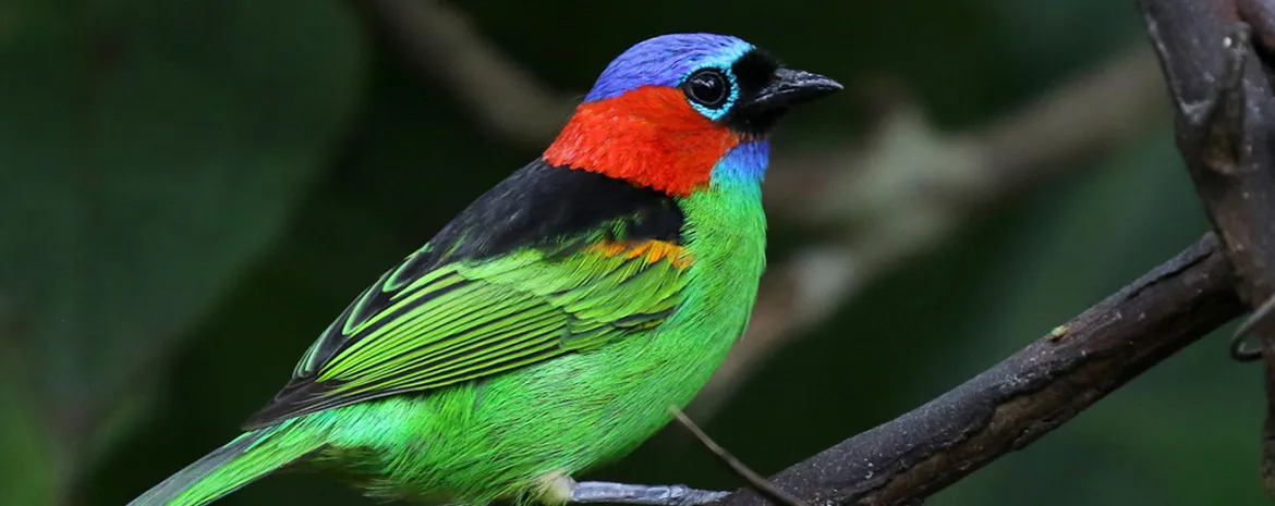 A Saíra Militar, subespécie encontrada no nordeste do Brasil, chama atenção por sua coloração marcante em azul e verde com cabeça avermelhada. Vive em fragmentos de Mata Atlântica e sofre com a destruição de seu habitat e o tráfico ilegal de aves.